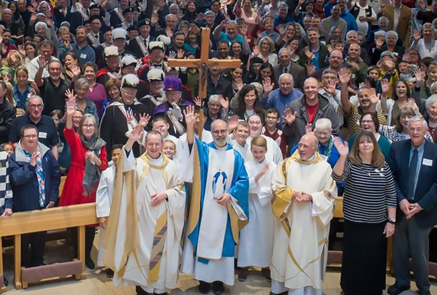 We look forward to celebrating with you! As you arrive, Greeters will welcome and ask invite you to write a nametag – please include the year you joined the parish. At the welcome table you will receive a special Mary, Mother of the Church anniversary prayer card. During Mass, parishioners that joined in the 1960s and 70s will be recognized and prayed for. At the end of both Masses, Fr. Jim will invite everyone to the center pews to take a group picture.