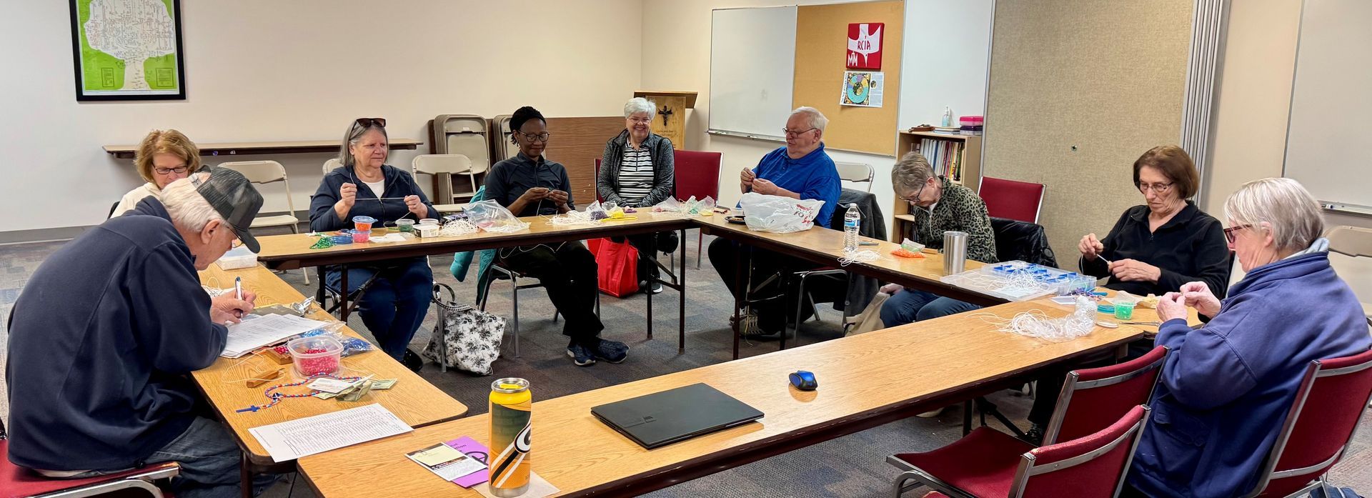 The Rosary Makers Ministry makes rosaries for our local parish and for communities around the world! Anyone is welcome to join this ministry, even if you do not know how to make a rosary. They meet every 2nd Saturday of the month from 9:00 -11:00am in Room 17 with a break from June-August and resuming in September. Rosaries go to local organizations and around the world to places such as Sierra Leone, Italy, Togo, Philippines, Mexico, Hina, Haiti, and Rwanda.